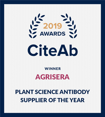 西美杰代理的專(zhuān)業(yè)植物學(xué)抗體公司Agrisera成立于1980年,位于瑞典,有多年的研發(fā)和生產(chǎn)經(jīng)驗(yàn),致力于植物/環(huán)境科學(xué)研究中所需蛋白抗體的研發(fā),主要集中于模式植物及其他植物的生理、病理等相關(guān)蛋白抗體,涵蓋擬南芥、水稻、玉米、大豆、木本植物、藻類(lèi)等30多個(gè)物種。Agrisera在2019年榮獲CiteAb頒發(fā)的全球科研試劑行業(yè)中植物抗體優(yōu)秀供應(yīng)商獎(jiǎng)項(xiàng)。
