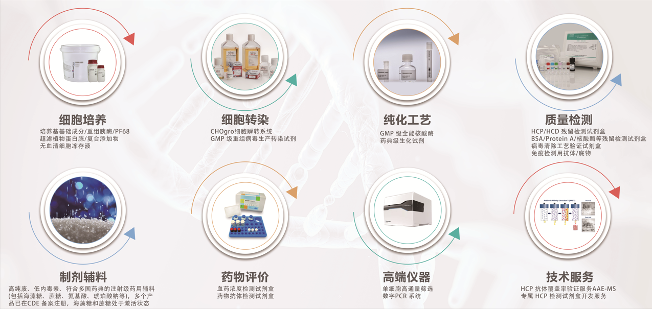 北京西美杰科技有限公司作為國(guó)內(nèi)生物制品行業(yè)的一站式產(chǎn)品與服務(wù)供應(yīng)商,本次帶來的展品將包括細(xì)胞培養(yǎng)基基礎(chǔ)成分、超濾植物蛋白胨、各類藥典級(jí)生化試劑、GMP級(jí)核酸酶、HCP/HCD檢測(cè)試劑盒、Protein A/BSA/MVM等生物工藝雜質(zhì)殘留檢測(cè)試劑盒、注射級(jí)藥用輔料、抗原/抗體/底物、數(shù)字PCR系統(tǒng),宿主蛋白殘留檢測(cè)試劑盒適用性驗(yàn)證及專屬試劑盒開發(fā)服務(wù)等,滿足從細(xì)胞培養(yǎng)、轉(zhuǎn)染、純化工藝、質(zhì)量控制、制劑與藥物評(píng)價(jià)等從研發(fā)到生產(chǎn)的一站式需求。