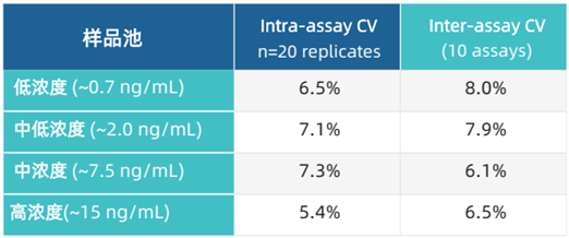 對已知濃度的4個樣品池進行批內(nèi)(Intra-assay)和批間(Inter-assay)精確性評估。