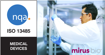 Mirus Bio的質(zhì)量管理體系通過了ISO 13485認(rèn)證,可用于技術(shù)轉(zhuǎn)讓以及分銷GMP級(jí)輔助材料。