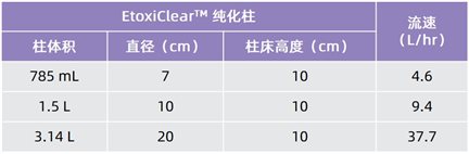 EtoxiClear?可提供填料和預裝柱兩種形式產品,以滿足不同的實驗需求。下表可用于估算處理不同規(guī)模樣品所需的柱尺寸。