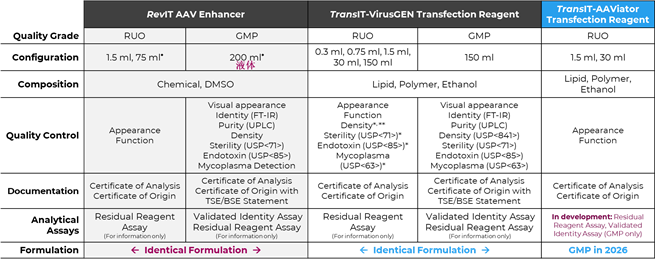 Mirus Bio AAV病毒生產(chǎn)相關(guān)轉(zhuǎn)染試劑產(chǎn)品參數(shù)